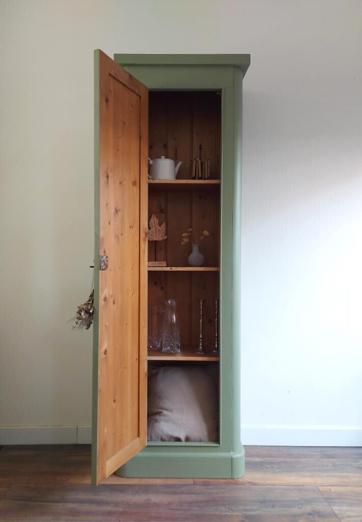 Landelijke klassieke kast, hoge eendeurskast, servieskast