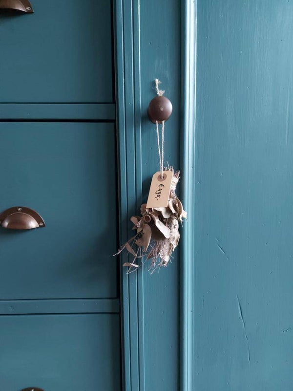 Hij is beschilderd met een matte kleur petrolblauw.