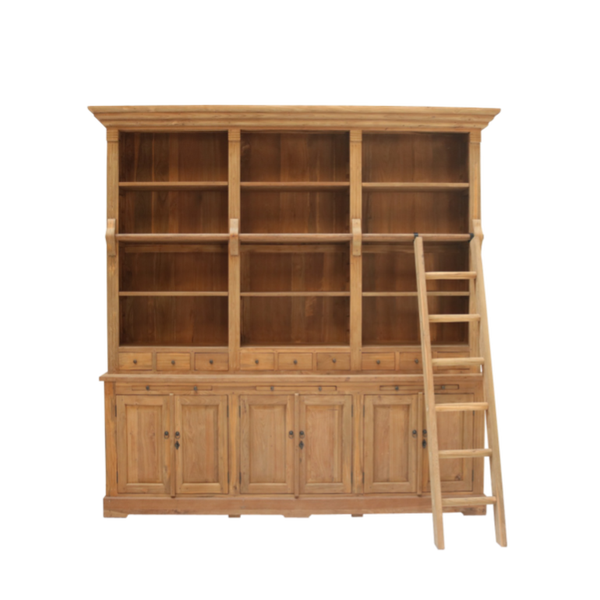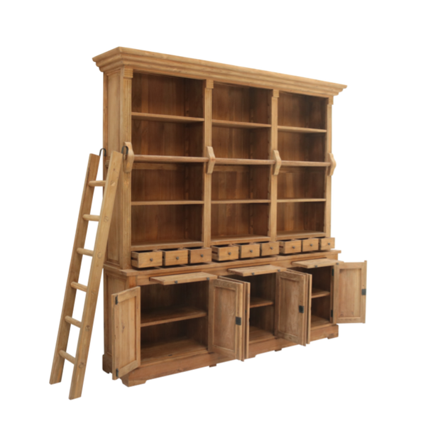 Landelijke klassieke kast Devonshire - boekenkast met laden (met trap)