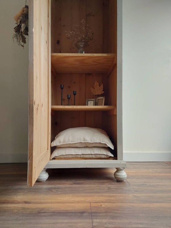 Deze landelijke kast is te gebruiken als linnen, servies- of voorraadkast. Een mooie kast voor in een keuken, woonkamer, gang of slaapkamer.