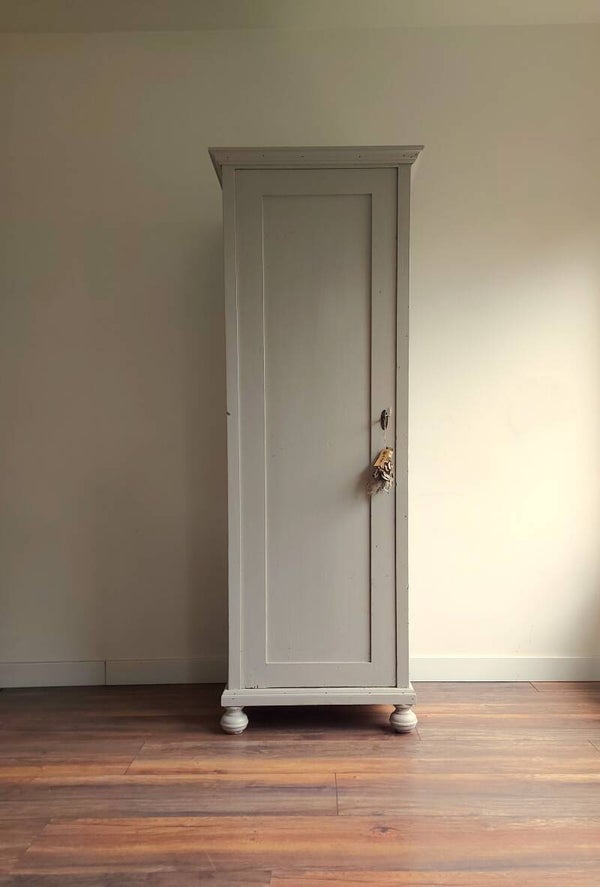 Landelijke klassieke kast, hoge eendeurskast, servieskast