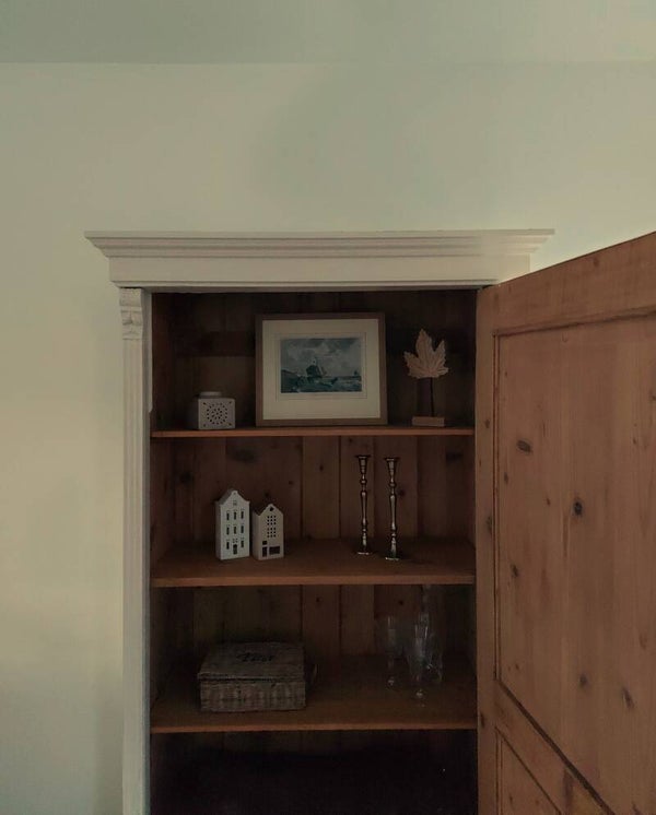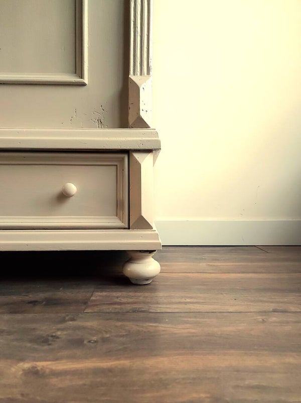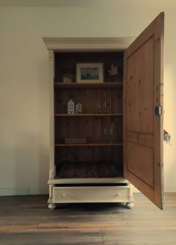 Een prachtige hoge karakteristieke oud-grenen kast met lade!