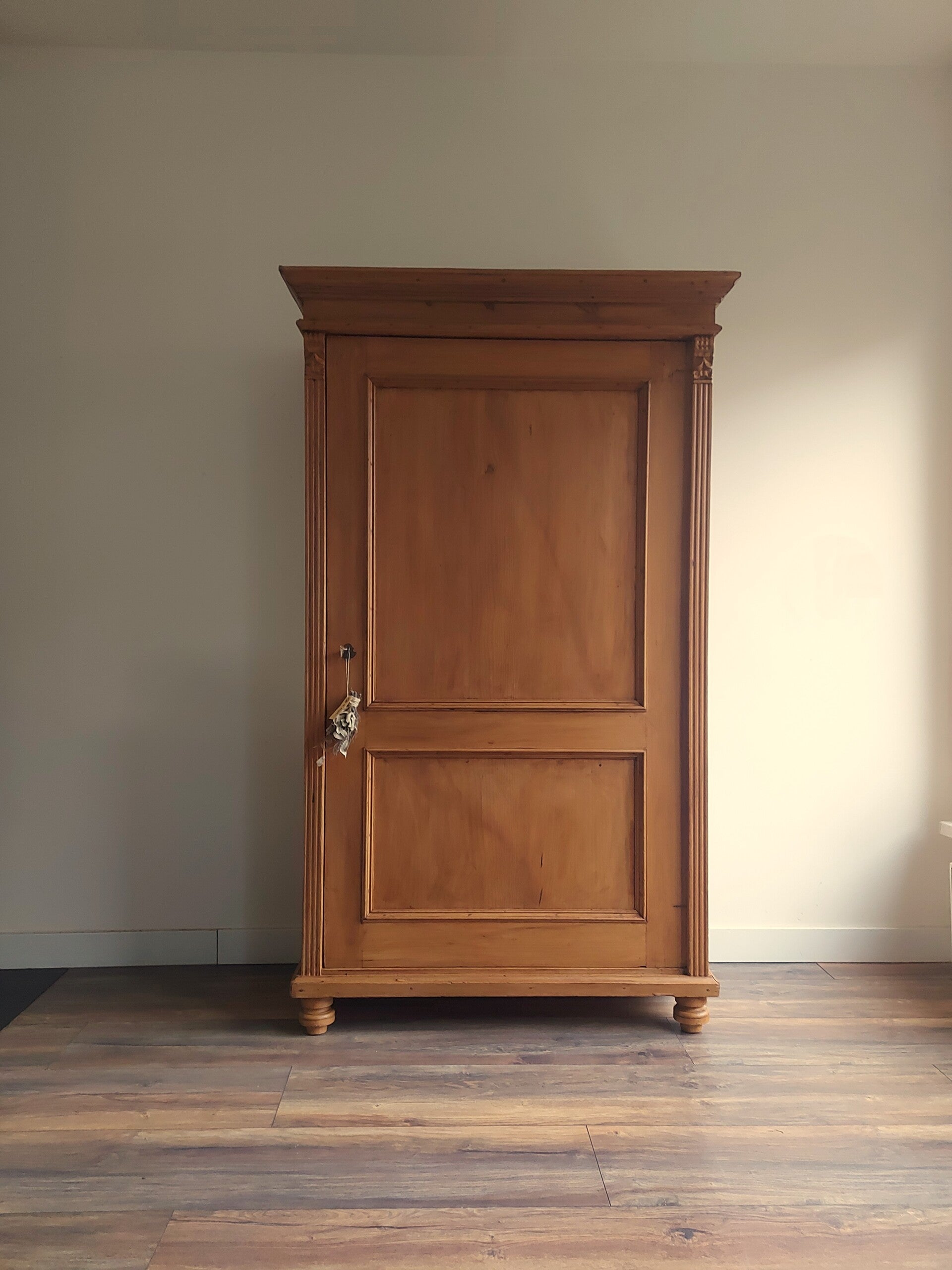 Een prachtige karakteristieke oud-grenen kast met lade!