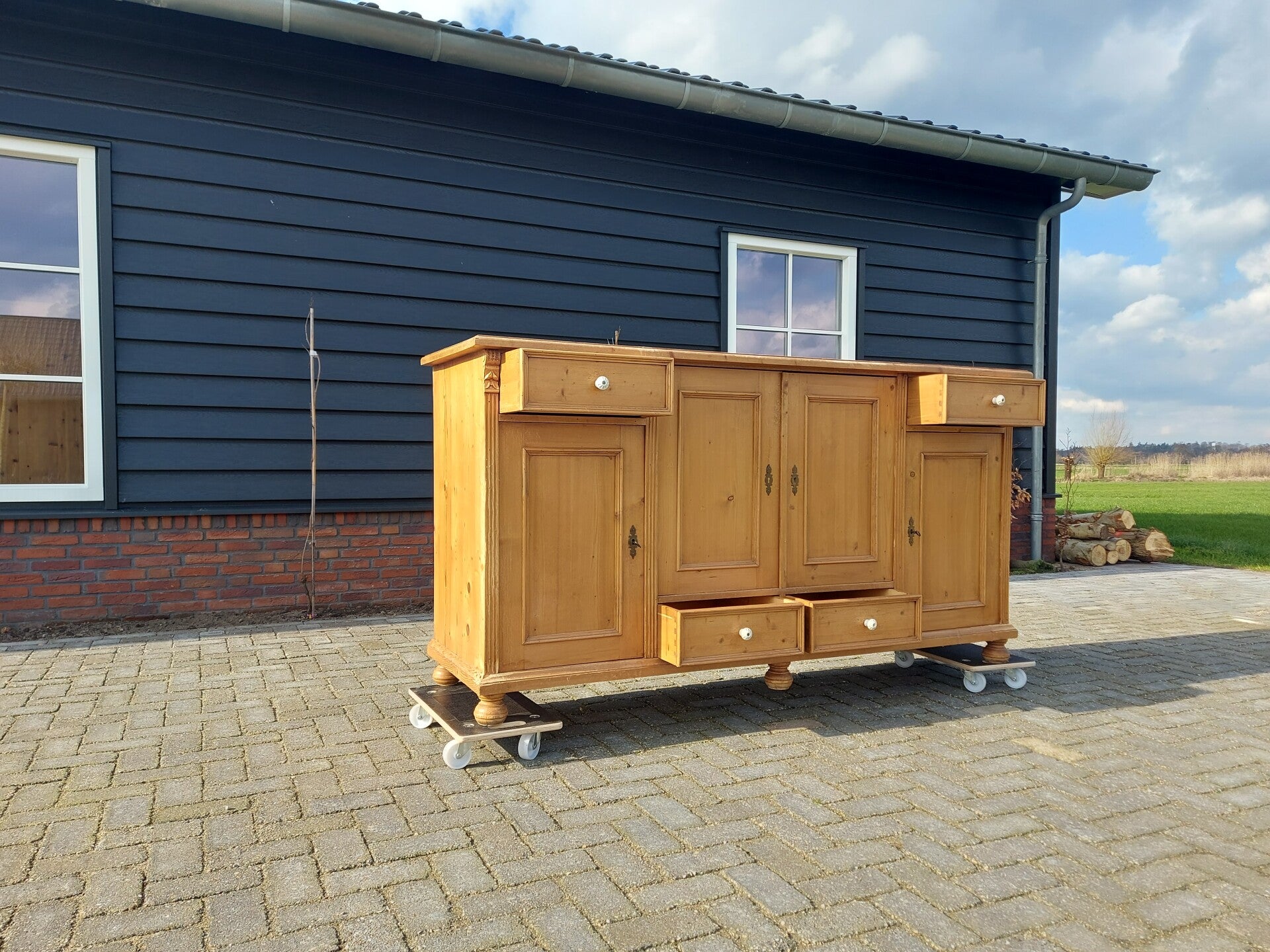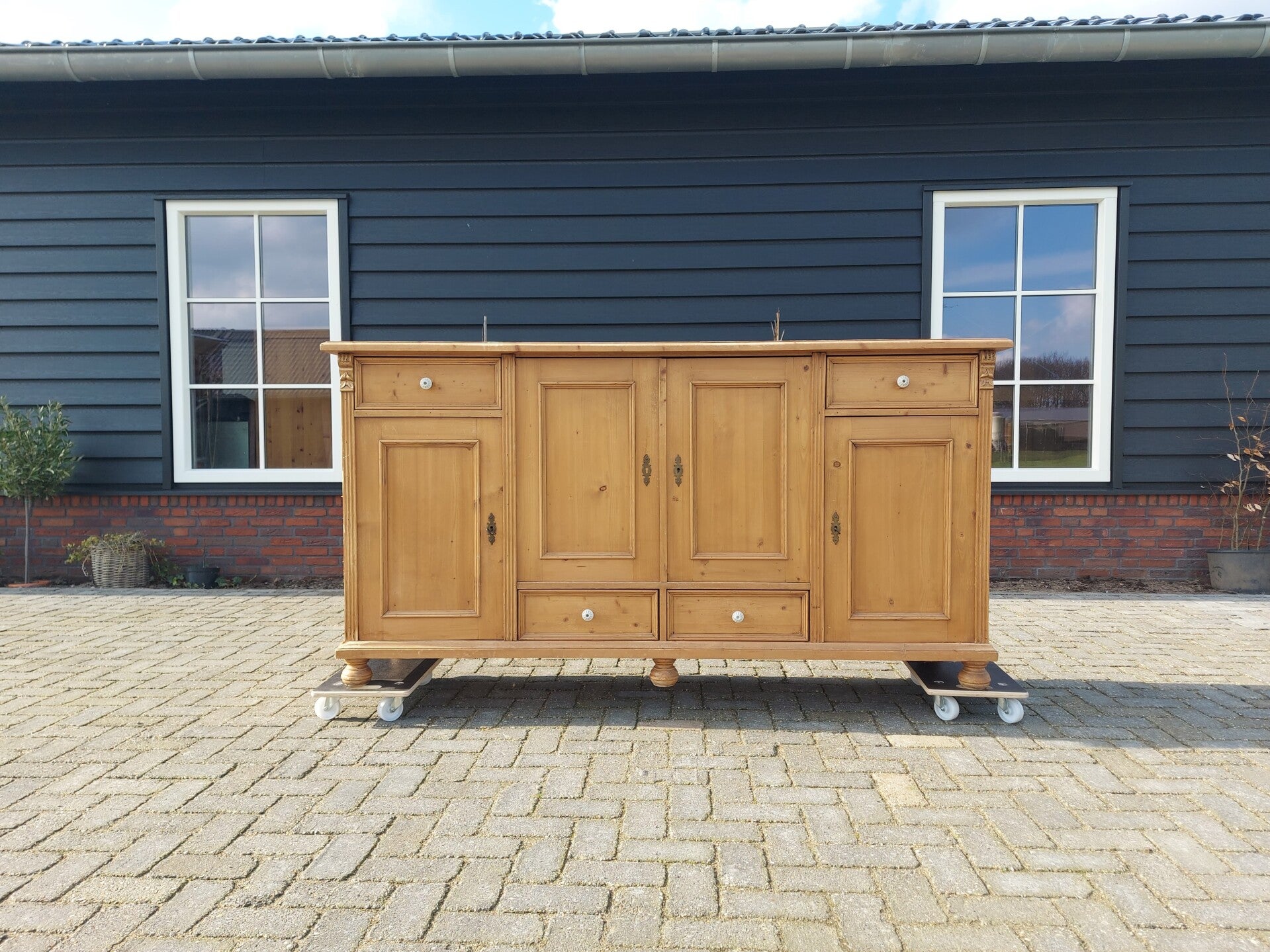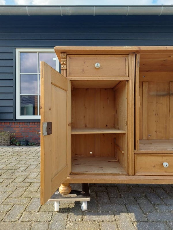 Dit is een bijzonder oud-grenen dressoir gemaakt in de Balkan regio, vermoedelijk van Hongaarse of Roemeense orgine.