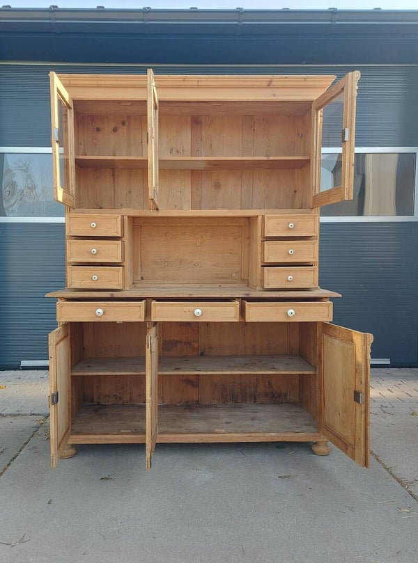 Deze landelijke kast is te gebruiken als buffet, servies- of voorraadkast.