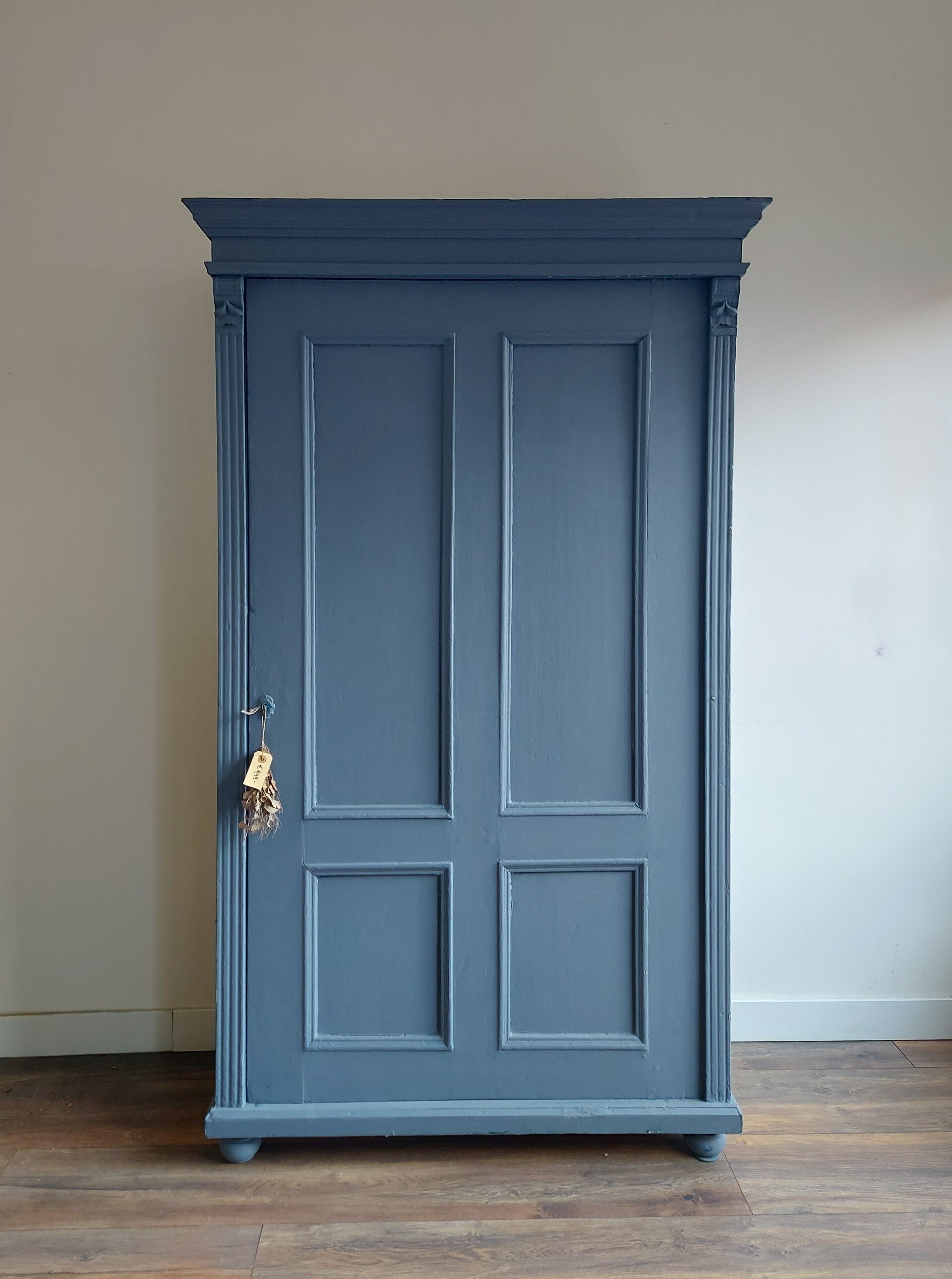 Dit is een bijzondere antieke eendeurskast waarschijnlijk afkomstig uit de Balkan regio. Beschilderd met matte houtlak in de kleur Oud Blauw.