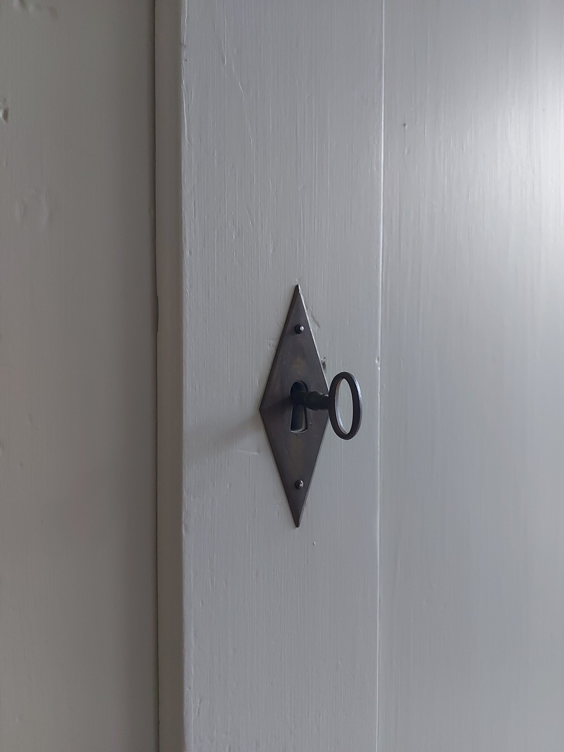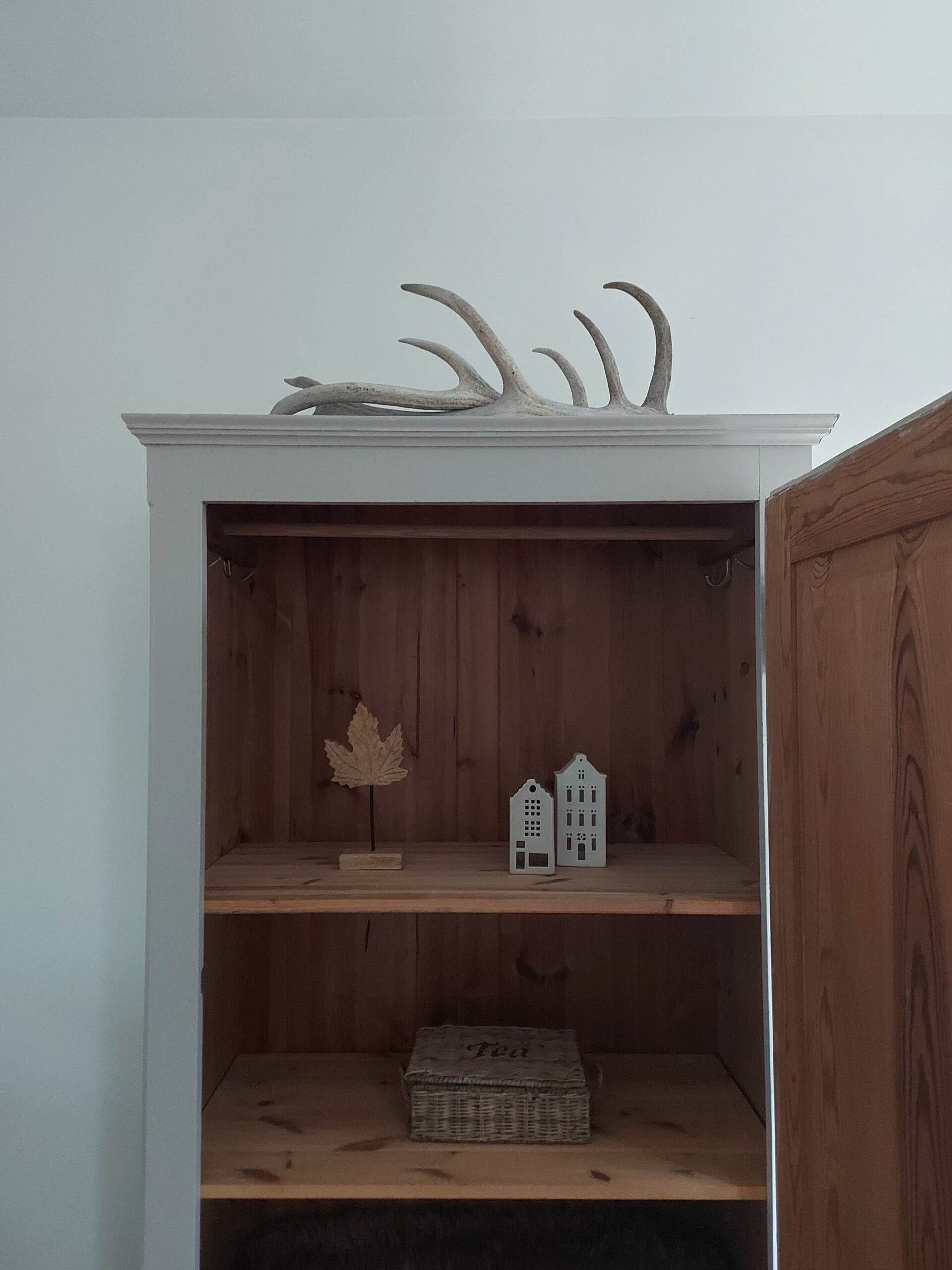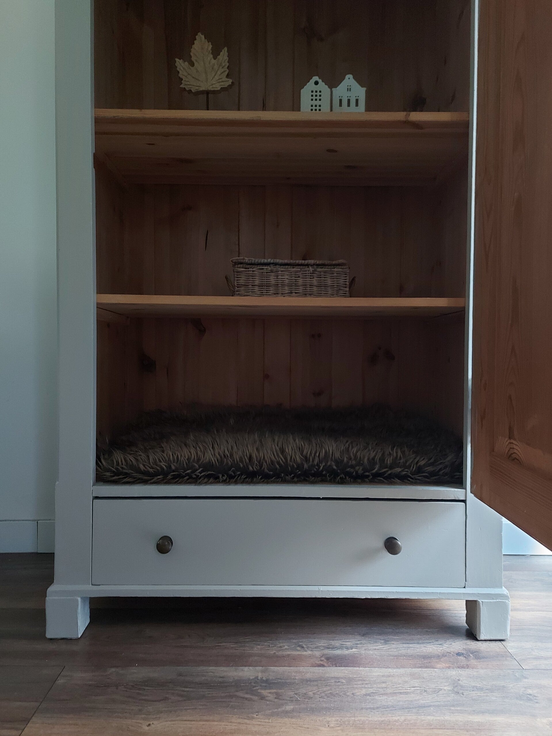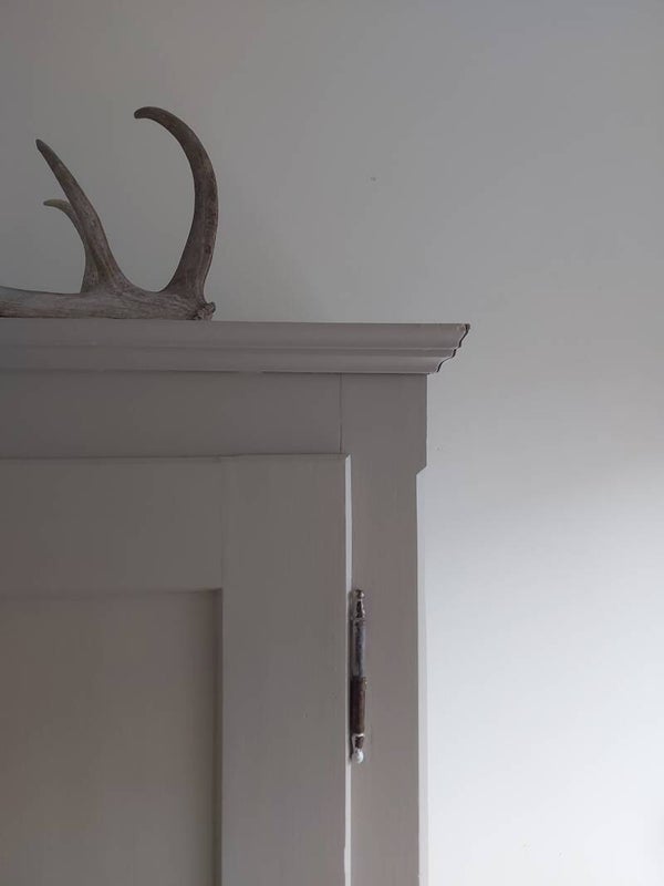 Dit is een bijzondere oud-grenen kast. Geschilderd met een matte houtlak in de kleur warm-wit.