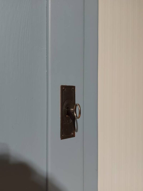 Dit is een bijzondere antieke eendeurskast. Deze kast is geschilderd in de kleur oud-blauw met een matte houtlak.
