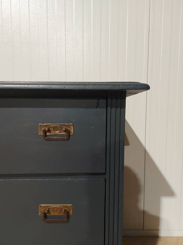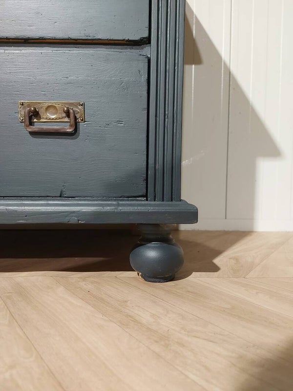 Hij is beschilderd in de kleur antraciet-blauw met een matte houtlak.