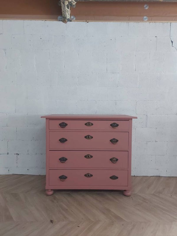 Hij is geschilderd in de kleur roze-rood in een matte houtlak.