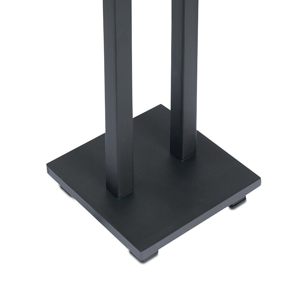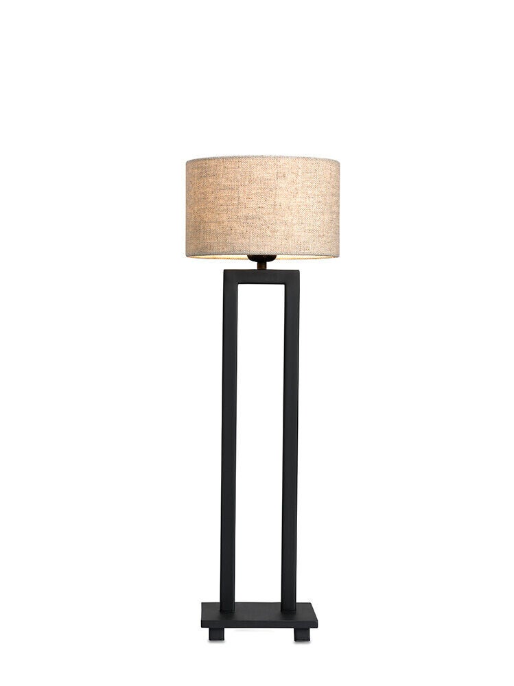Strak vormgegeven tafellamp met dubbele verticale buis, deze lamp wordt geleverd zonder kap. Naar keuze kan er een model kap bij gekozen worden, met een kap in een fluwelen stof krijgt deze lamp een nog luxere uitstraling.