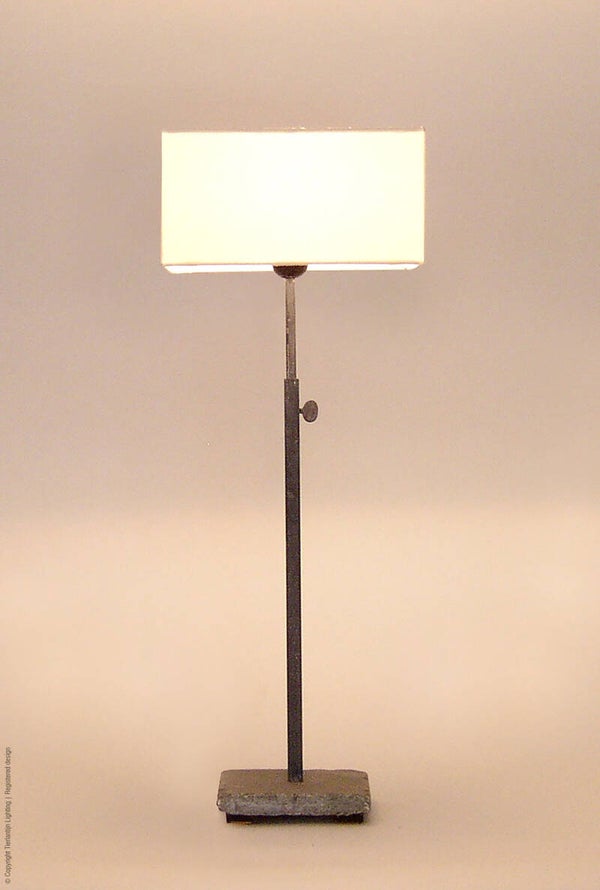 In hoogte verstelbare tafellamp in mat zwart met hardstenen voet, exclusief kap